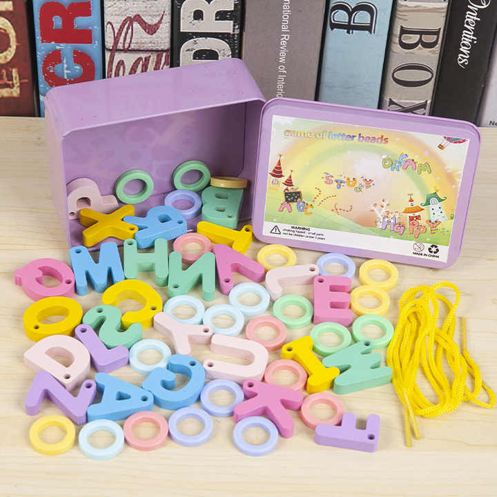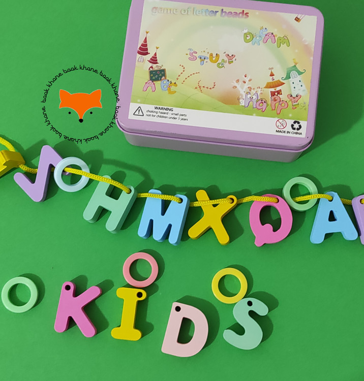 بازی فکری نخ و مهره چوبی حروف انگلیسی یکی از بازی های جذاب و سرگرم کننده است که بچه ها با این بازی فکری میتونن با بازی و سرگرمی حروف لاتین را یاد بگیرن و با شکل کلمات و رنگ ها اشنا بشن و کلی کیف کنند . اسباب بازی نخ و مهره بدون شک بهترین و تاثیر گذارترین روش آموزش کودکان است ، انتخاب بازی مناسب برای کودکان می تواند باعث افزایش مهارت های فیزیکی و رشد ذهنی آن ها شود.