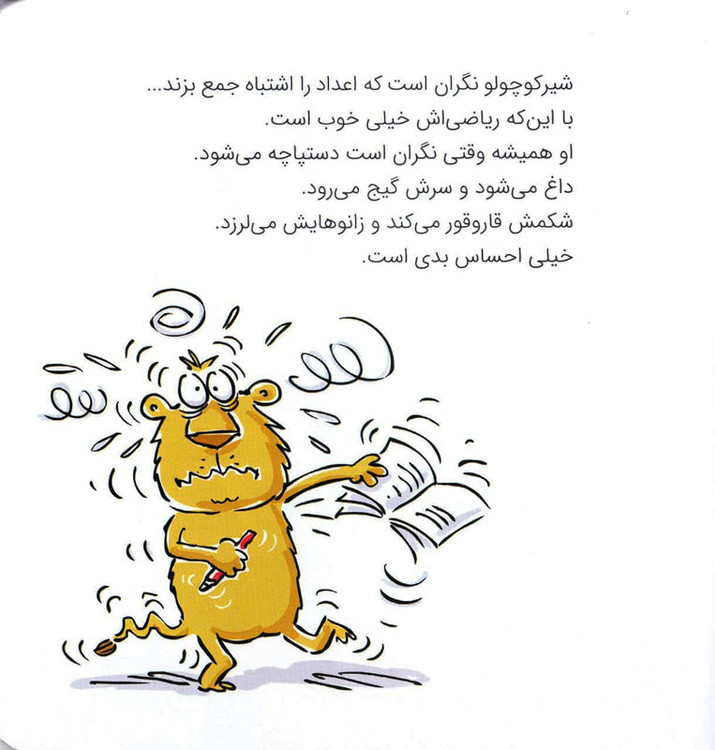 شیرکوچولو همیشه نگران است. او از هر چیزی نگران میشود؛ مثل اینکه دیر به مدرسه برسد. تازه زود رسیدن هم او را نگران میکند. ریاضی شیرکوچولو خیلی خوب است، اما او همیشه نگران است که مبادا اعداد را اشتباهی جمع بزند. برای همین مدام دستپاچه میشود. اینجور وقتها داغ میشود و سرش گیج میرود. شکمش قاروقور میکند و زانوهایش میلرزد. خیلی خیلی احساس بدی است. حالا فکرش را بکنید… قرار است همهی بچههای مدرسه را به پارک جنگلی ببرند. به نظر شما شیرکوچولو چه حالی دارد. او تمام اتفاقات بدی را که ممکن است اتفاق بیفتد تصور میکند. برای همین لحظه به لحظه حالش بدتر میشود. شما اگر جای شیرکوچولو بودید چهکار میکردید؟ قید رفتن به اردو را میزدید یا به خودتان میگفتید: «شیر دیگر دستپاچه نمیشود»؟ به نظر شما، اینجور وقتها بهترین کار چیست؟