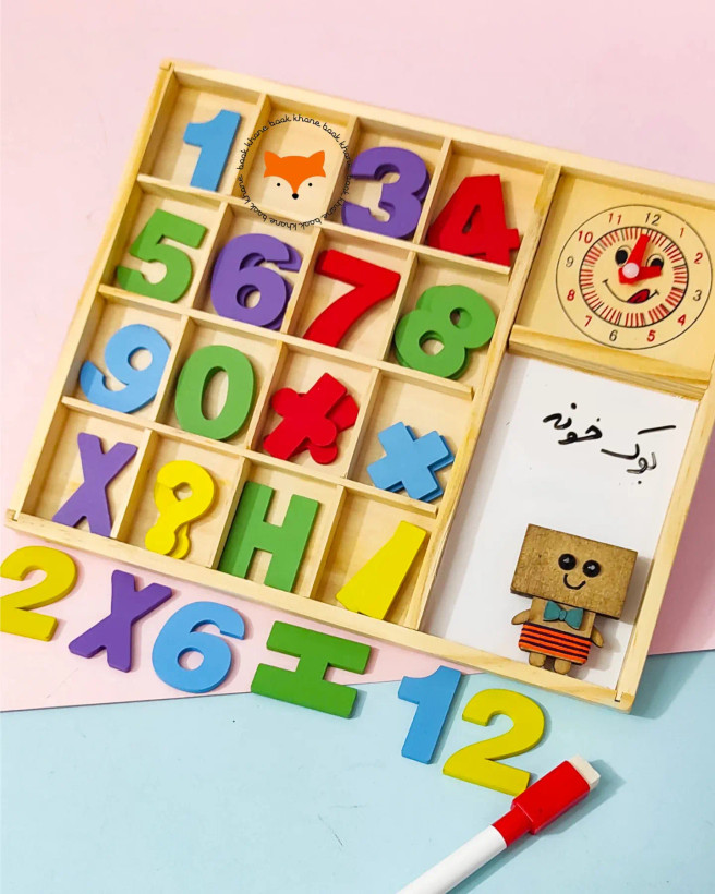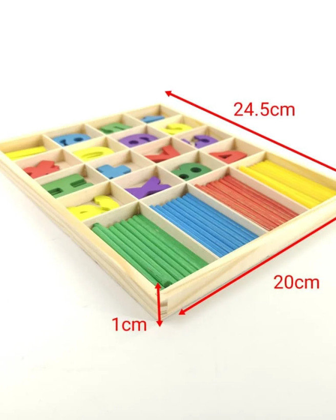 اسباب بازی های چوبی همیشه جزو پرطرفدار ترین اسباب بازی های فکری برای خردسالان و کودکان می باشند. اسباب بازی چوبی آموزش اعداد و ریاضی؛ دارای 72 قطعه است و یک بازی آموزشی اعداد انگلیسی می باشد که همراه با چوب خط، برای درک بهتر اعداد توسط کودکان همراه شده است. قطعات تشکیل دهنده این محصول شامل اعداد صفر تا 9 و چهار علامت اصلی ریاضی و تعداد زیادی چوب خط رنگی می باشد.