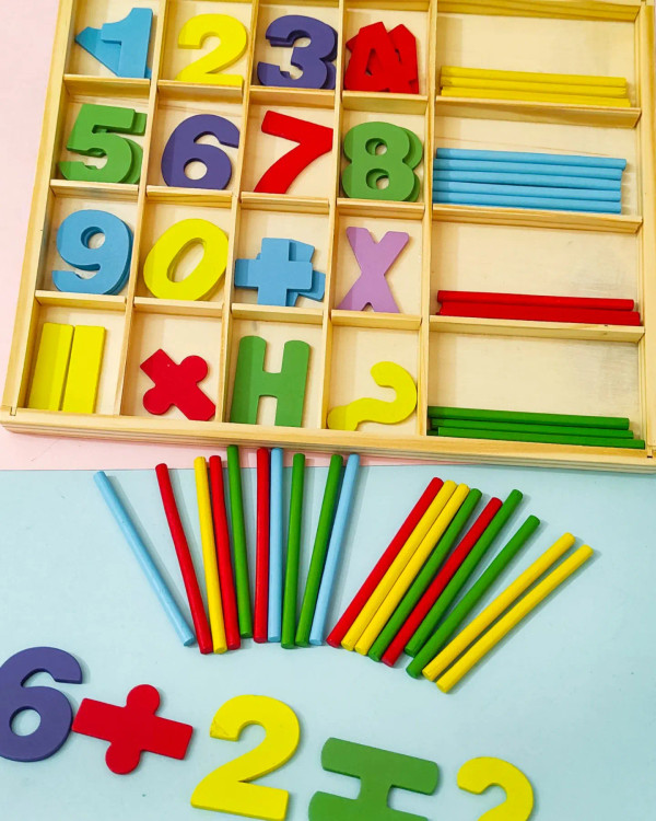 اسباب بازی های چوبی همیشه جزو پرطرفدار ترین اسباب بازی های فکری برای خردسالان و کودکان می باشند. اسباب بازی چوبی آموزش اعداد و ریاضی؛ دارای 72 قطعه است و یک بازی آموزشی اعداد انگلیسی می باشد که همراه با چوب خط، برای درک بهتر اعداد توسط کودکان همراه شده است. قطعات تشکیل دهنده این محصول شامل اعداد صفر تا 9 و چهار علامت اصلی ریاضی و تعداد زیادی چوب خط رنگی می باشد.