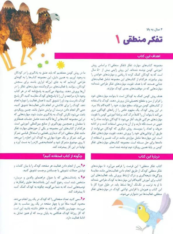 این کتاب، این فرصت را فراهم میآورد تا مهارتهای تفکر منطقی کودک از طریق انجامدادن فعالیتهایی مانند مقایسۀ ویژگیها، نتیجهگیری و درک ارتباط پرورش یابد. فعالیتهای این کتاب برای آموزش گامبهگام این مهارتها به خردسالان بالای ۴ سال طراحی شده است تا کودک بهترتیب بر تکتک آنها تسلط یابد. همزمان با افزایش توانایی کودک در مهارتهای تفکر منطقی، فعالیتها نیز دشوارتر میشوند.
