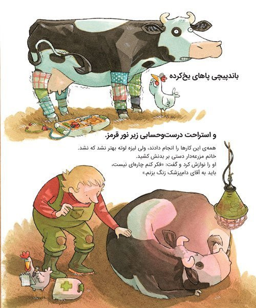 وقتی لیزهلوته مریض میشود، خانم مزرعهدار و همهی حیوانات مزرعه دستبهدست هم میدهند تا مراقب او باشند و کاری کنند تا زودتر حالش خوب شود. این حس آنقدر پررنگ است که وقتی لیزهلوته حالش خوب میشود، خودش هم از بقیه پرستاری میکند.