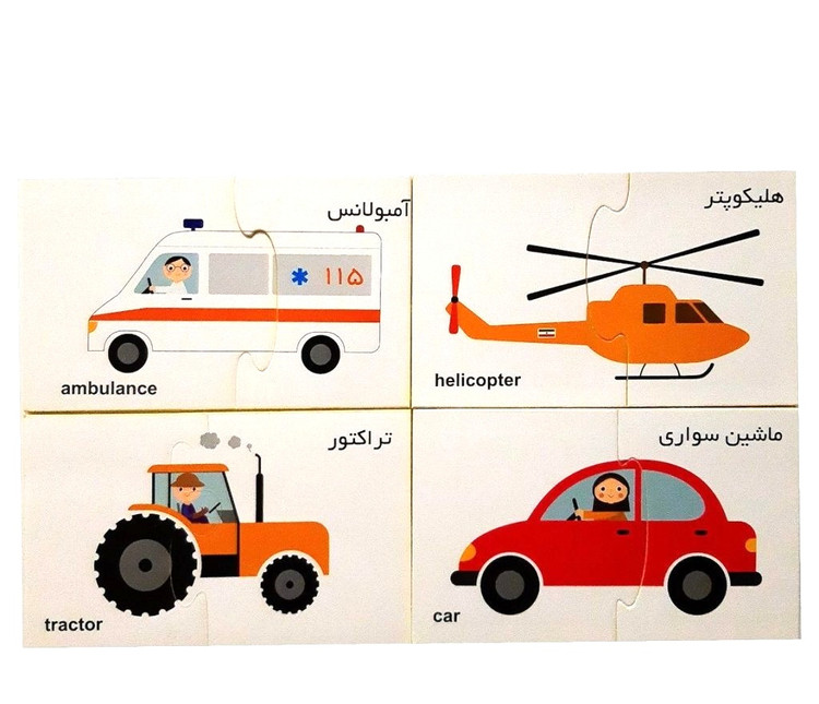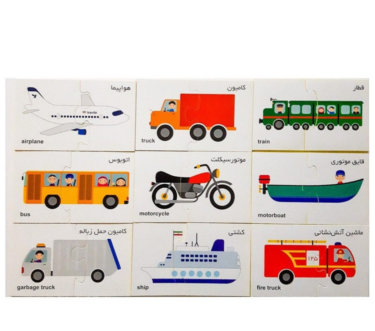 جورچین دوتکه وسایل حمل و نقل ازتعداد 10 جورچین (دورو )که شامل وسایل حمل و نقل مشاغل مختلف است تشکیل شده است که