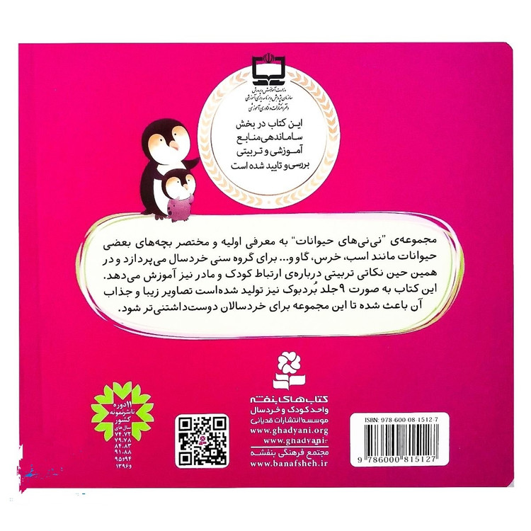 مجموعه نی نی های حیوانات به معرفی اولیه و مختصر بچه های بعضی حیوانات مانند اسب،خرس،گاو و ... برای گروه سنی خردسال می پردازد و در همین حین نکاتی در باره ارتباط کودک و مادر نیز آموزش می دهد. تصاویر زیبا و جذاب آن باعث شده تا این مجموعه برای خردسالان دوست داشتنی تر می شود.