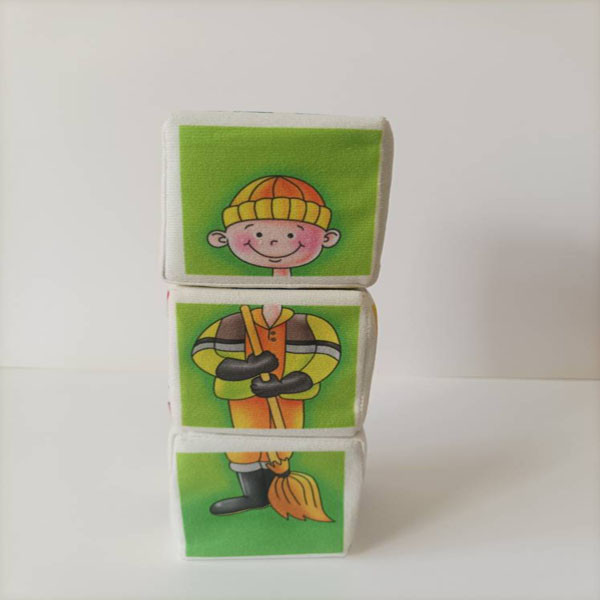 این مکعب ها معرف شش شغل مختلف هستند. و به صورتی پازل می باشند که با چیدن آن ها بر روی هم تصویر شغل ها ی مد نظر نمایان می شود.