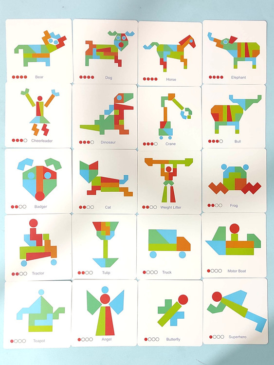 بازی تطابق اشکال شامل بیست کارت دو رو هست که از مرحله آسون به سخت داره و درجه بندی شده کارت ها