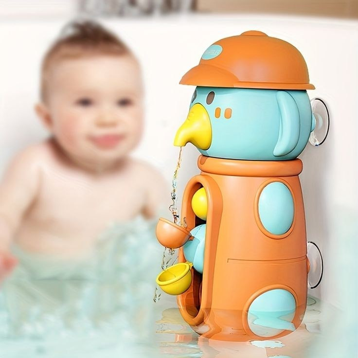 آبریزی که به دیوار حموم وصل میشه و بچه میتونه کلاه اسباب بازی رو از سرش برداره و به عنوان سطل آب پرش کنه و بریزه بالای سر این اسباب بازی ها تا شروع کنند به آب پاشی و چرخوندن سطل های روبروشون