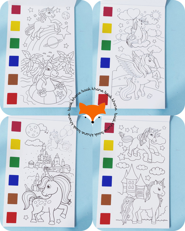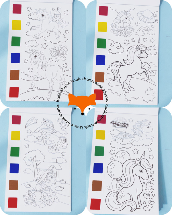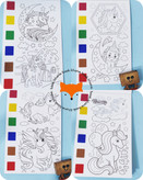کتابچه رنگ آمیزی آب رنگی یکی از به صرفه ترین و زیباترین کتاب ها برای تمرین رنگ آمیزی و تقویت این مهارت است. روی هر صفحه پالت شش رنگی آبرنگ وجود دارد که کودک بایستی قلموی موجود در بسته را آغشته به کمی آب کند و سپس از هر رنگی که دوست دارد کمی بردارد و هر قسمتی که دوست دارد را رنگ کند. حتی کودکان می تواند علاوه بر رنگ آمیزی با رنگ های موجود روی هر صفحه، رنگ های جدیدی را با ترکیب کردن بسازند.