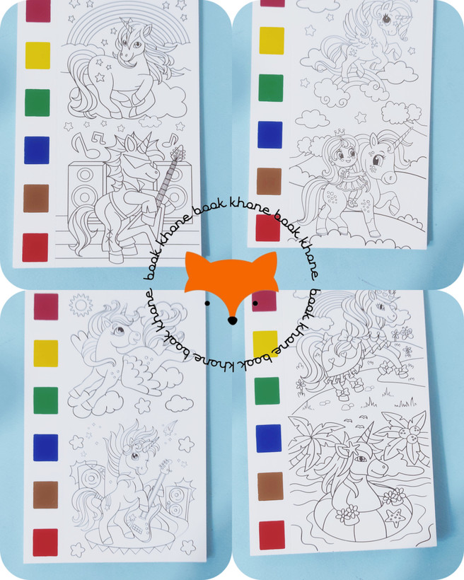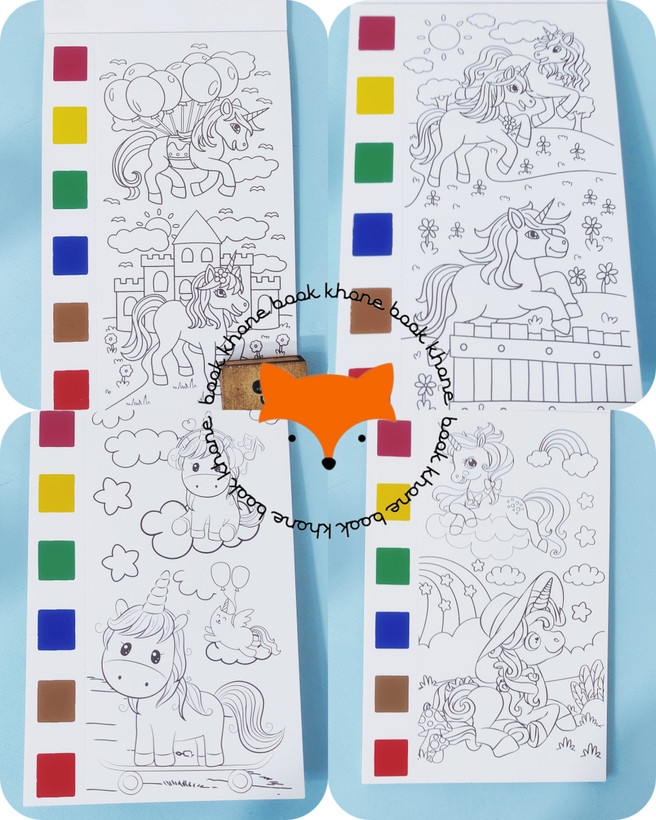 کتابچه رنگ آمیزی آب رنگی یکی از به صرفه ترین و زیباترین کتاب ها برای تمرین رنگ آمیزی و تقویت این مهارت است. روی هر صفحه پالت شش رنگی آبرنگ وجود دارد که کودک بایستی قلموی موجود در بسته را آغشته به کمی آب کند و سپس از هر رنگی که دوست دارد کمی بردارد و هر قسمتی که دوست دارد را رنگ کند. حتی کودکان می تواند علاوه بر رنگ آمیزی با رنگ های موجود روی هر صفحه، رنگ های جدیدی را با ترکیب کردن بسازند.