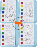 کتابچه رنگ آمیزی آب رنگی یکی از به صرفه ترین و زیباترین کتاب ها برای تمرین رنگ آمیزی و تقویت این مهارت است. روی هر صفحه پالت شش رنگی آبرنگ وجود دارد که کودک بایستی قلموی موجود در بسته را آغشته به کمی آب کند و سپس از هر رنگی که دوست دارد کمی بردارد و هر قسمتی که دوست دارد را رنگ کند. حتی کودکان می تواند علاوه بر رنگ آمیزی با رنگ های موجود روی هر صفحه، رنگ های جدیدی را با ترکیب کردن بسازند.