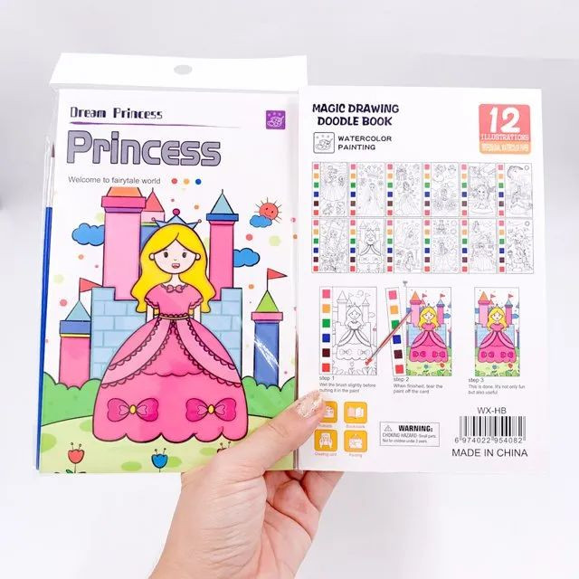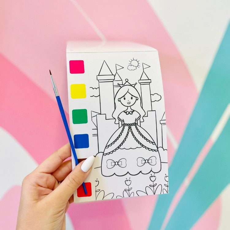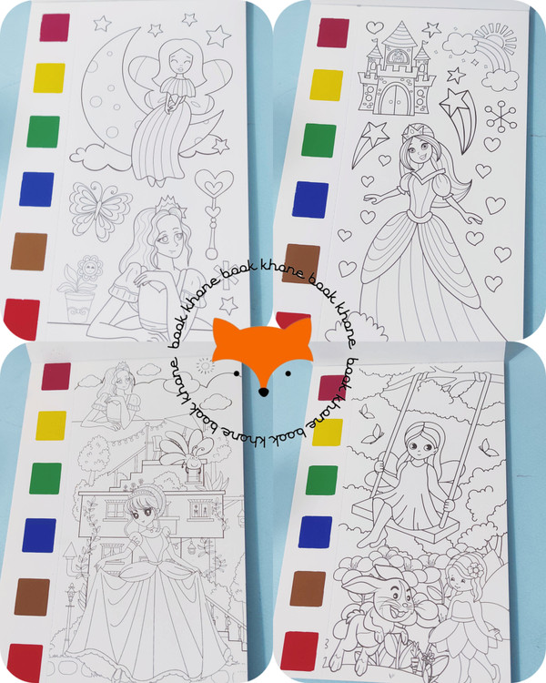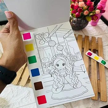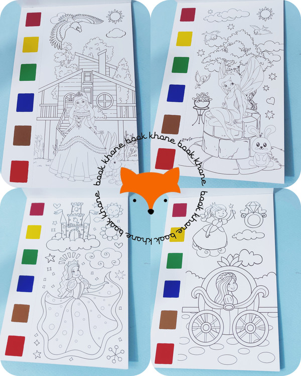 کتابچه رنگ آمیزی آب رنگی یکی از به صرفه ترین و زیباترین کتاب ها برای تمرین رنگ آمیزی و تقویت این مهارت است. روی هر صفحه پالت شش رنگی آبرنگ وجود دارد که کودک بایستی قلموی موجود در بسته را آغشته به کمی آب کند و سپس از هر رنگی که دوست دارد کمی بردارد و هر قسمتی که دوست دارد را رنگ کند. حتی کودکان می تواند علاوه بر رنگ آمیزی با رنگ های موجود روی هر صفحه، رنگ های جدیدی را با ترکیب کردن بسازند.