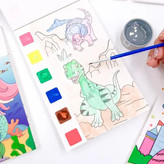 کتابچه رنگ آمیزی آب رنگی یکی از به صرفه ترین و زیباترین کتاب ها برای تمرین رنگ آمیزی و تقویت این مهارت است. روی هر صفحه پالت شش رنگی آبرنگ وجود دارد که کودک بایستی قلموی موجود در بسته را آغشته به کمی آب کند و سپس از هر رنگی که دوست دارد کمی بردارد و هر قسمتی که دوست دارد را رنگ کند. حتی کودکان می تواند علاوه بر رنگ آمیزی با رنگ های موجود روی هر صفحه، رنگ های جدیدی را با ترکیب کردن بسازند.