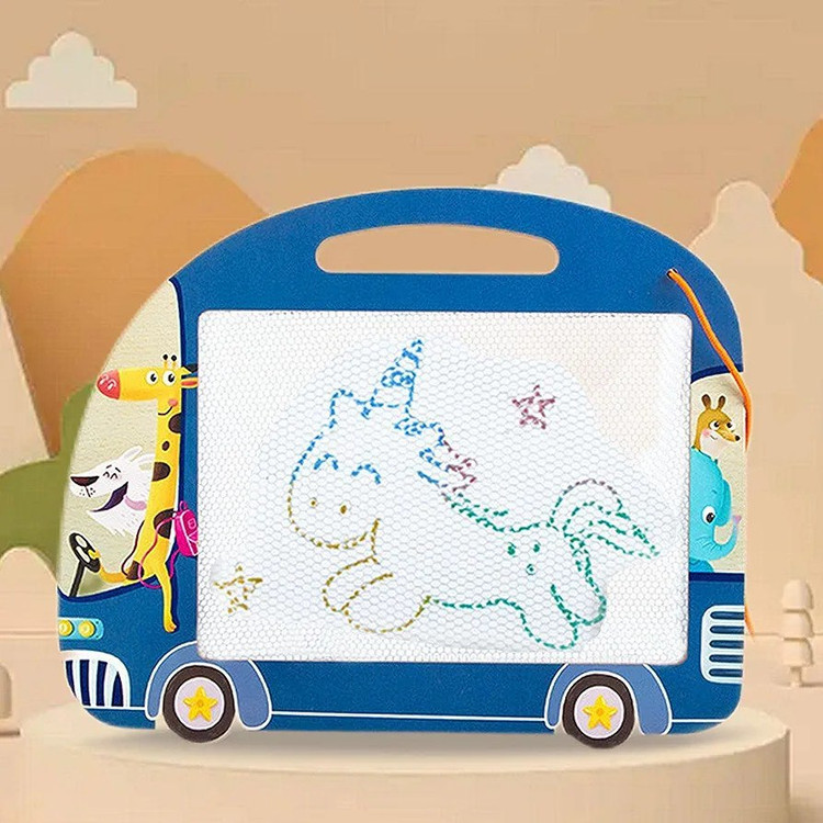تختهها دو رو هستند و با کشیدن قلم مخصوص روی سطح، تصاویر رنگی در هفت رنگ جذاب ظاهر میشوند. برای پاک کردن تصاویر، کافیست از قطعه پاککن مغناطیسی استفاده شود تا سطح تخته دوباره آماده طراحی شود. این محصول مناسب برای تقویت خلاقیت، هماهنگی دست و چشم، و آموزش رنگها و اشکال است.
