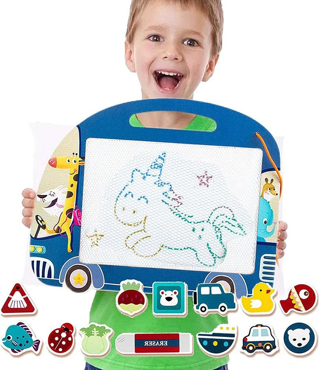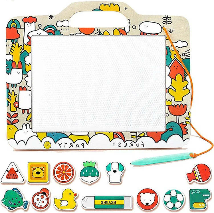 قلم مخصوص طراحی و پاککن مغناطیسی، استفاده از تخته را ساده و جذاب کردهاند. این محصول برای استفاده در خانه، مهدکودک یا هدیه تولد بسیار مناسب است و به کودک کمک میکند مهارتهای حرکتی و خلاقیت خود را تقویت کند.