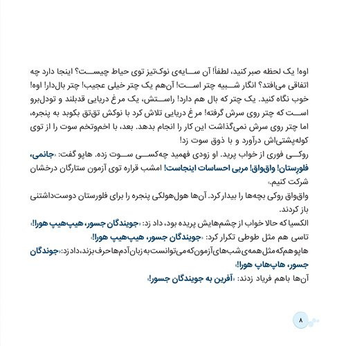 باران که شُرشُر میبارد، فلورِستان پیدا میشود. ایندفعه جویندگان جسور قرار است به بازار محلهشان بروند. آخجان، یک مهمانی باشکوه! بچهها میخواهند آنجا یک غذای خاص درست کنند، آنهم با شعر و ترانه، لطیفه، لبخند، معما، رنگ و عطر! جناب بادامزمینی میزبان است و مشخص میکند هرکس توی کدام گروه باشد. ایده دارم خیلی عالی! جای شما خالی! بچهها یک عالمه فکر جالب دارند. آنها زودی دست بهکار میشوند و فهرست غذای شادی معرکهای آماده میکنند.