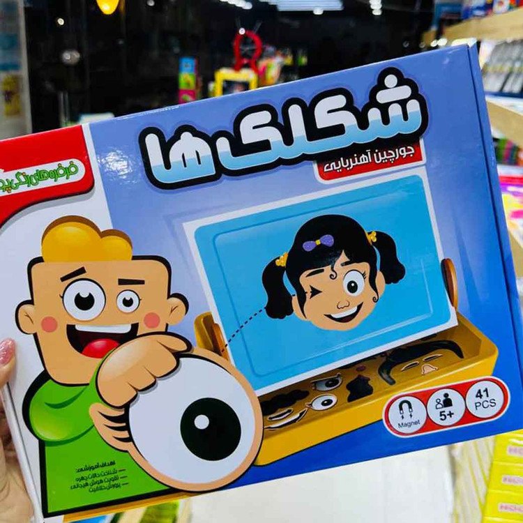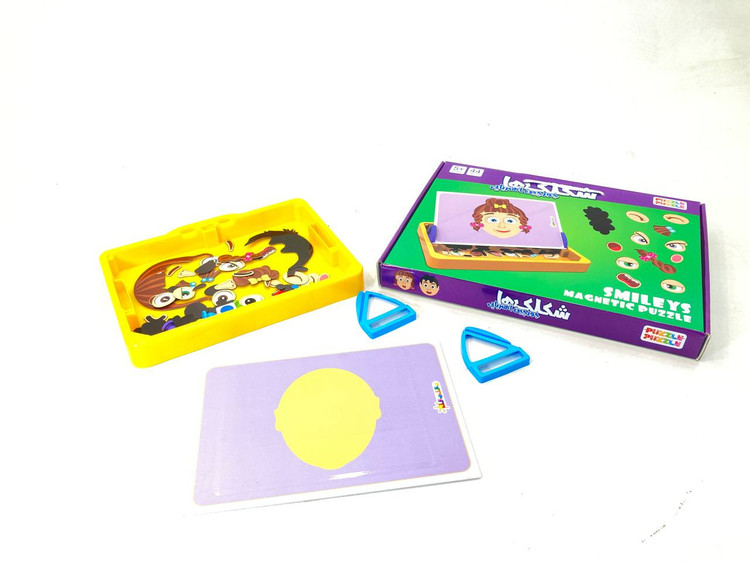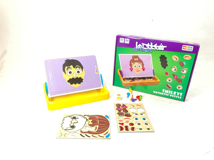 جورچین آهنربایی شکلک ها شامل 44 قطعه هندسی مغناطیسی از اجزای مختلف صورت بهمراه یک تخته دو منظوره ( مغناطیسی و وایت بردی) می باشد.