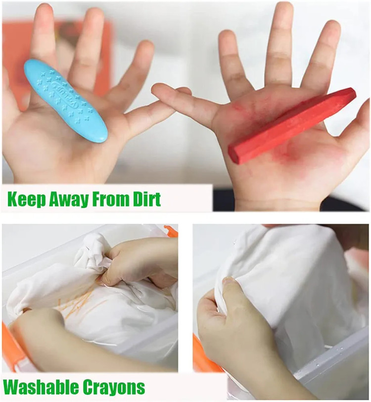 از ویژگیهای دیگر این محصول که دغدغه برخی والدین است ، پاک شدن از روی دیوار یا لباس است که به راحتی با آب و صابون قابل شستشو و پاک شدن است.