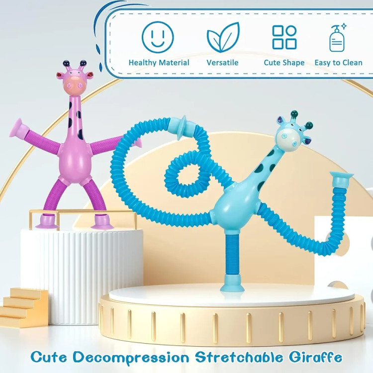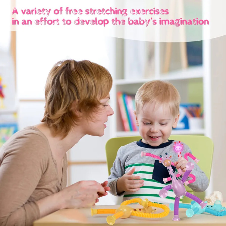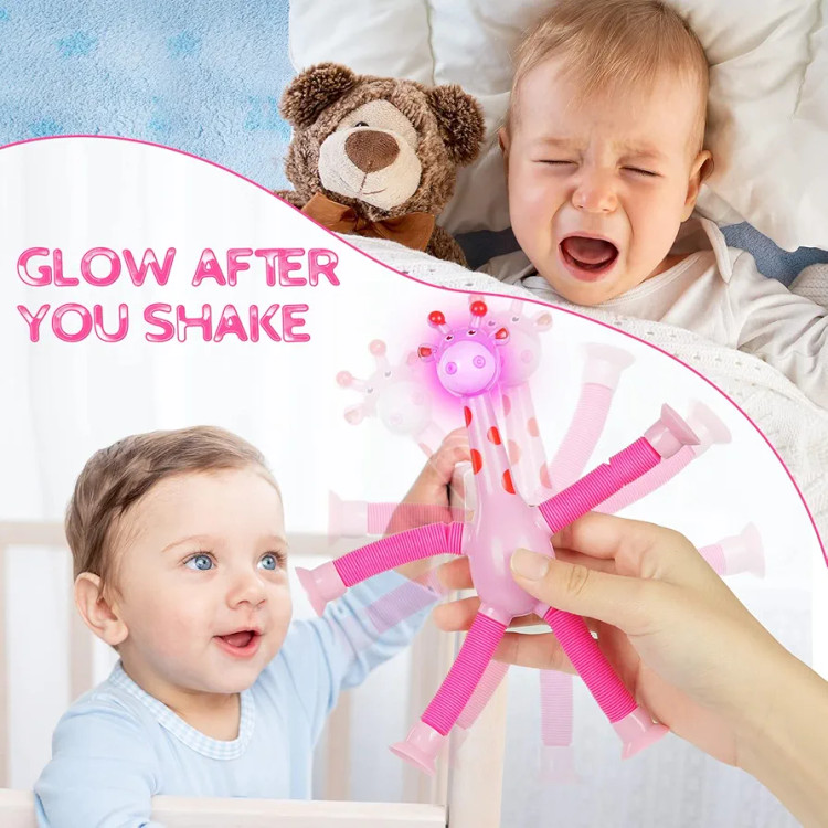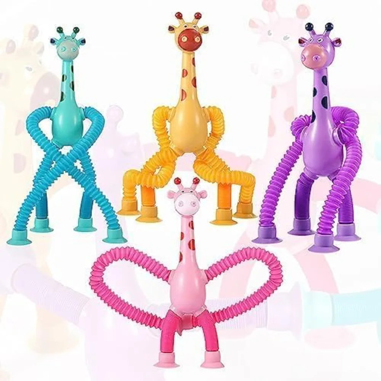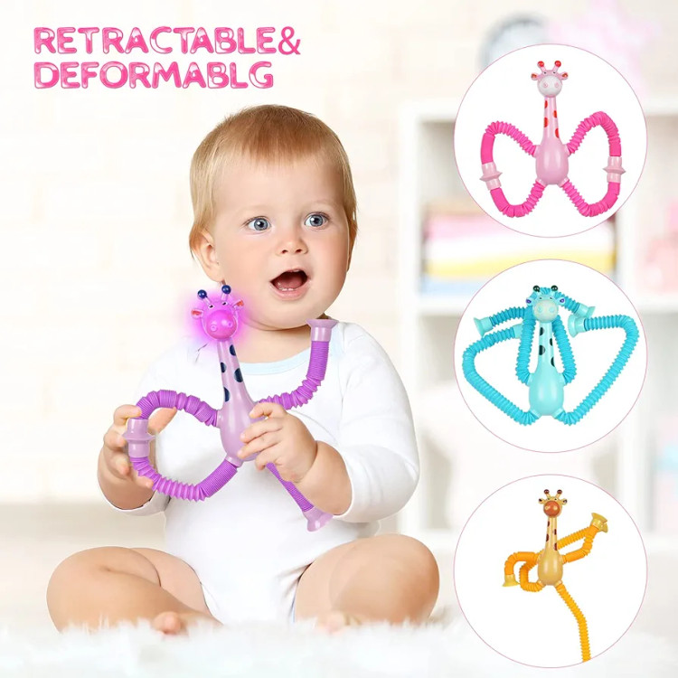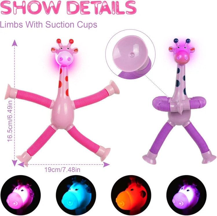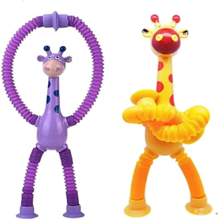 بازی سرگرم کننده زرافه لوله ای چسبنده چراغدار یک اسباب بازی ضد استرس با تمرکز بر استفاده از انگشتان دست ها و تقویت حواس و شنوایی کودک است که با ظاهر زیبا و رنگ های جذابش به خوبی می تواند کودکان را سرگرم کند.