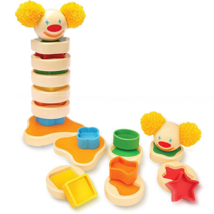 شناخت و تطابق یکی از مهمترین و پایه ای ترین اهداف آموزشی در نوزادان و نونهالان است. برای کودکان 18 ماهه به بالا می توان از وسایلی استفاده کرد که قدرت انطباق و جاگذاری را افزایش داد. کودک در این سن می تواند اشکال مدور را در جاهای خود قرار دهد و با تلاش شما و خودش بعد از بازی کردن با وسایلی که برای این منظور ساخته شده اند قادر خواهد بود هر شکل را سر جای خودش قرار دهد . برج دلقک از قطعات رنگی به اشکال مختلف مانند (مربع، بیضی، ستاره، گل و پاپیون) و 5 قطعه دایره ای شکل که هر وجه آن از نظر رنگ و شکل مشابه یکی از قطعات رنگی هستند ساخته شده است. کودکان باید این قطعات را با توجه به رنگ و شکل شان روی یکدیگر قرار داده تا برج دلقک ساخته شود. بعد از اتمام کار شما شاهد یک دلقک بامزه هستید و کودک از ساخته خود خرسند و شاد می شود و لحظات شادی را با این برج دلقک سپری خواهد کرد. این اسباب بازی که برای سنین بالای 2 سال طراحی شده است به کودک تشخیص تفاوت میان اشکال هندسی و رنگ های مختلف را آموزش می دهد و همچنین موجب می شود که فرزند دلبندتان، یکی از اولین حل مسئله های خود را تجربه کند و از حواس بینایی و لامسه و قدرت تفکر خود به بهترین نحو استفاده کند.