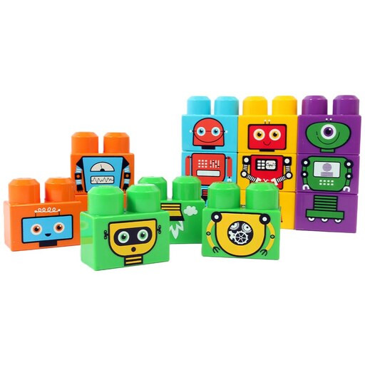 قطعات این آجره در رنگهای جذاب و شاد، همراه با عکس ربات ها چاپ شده میباشد.