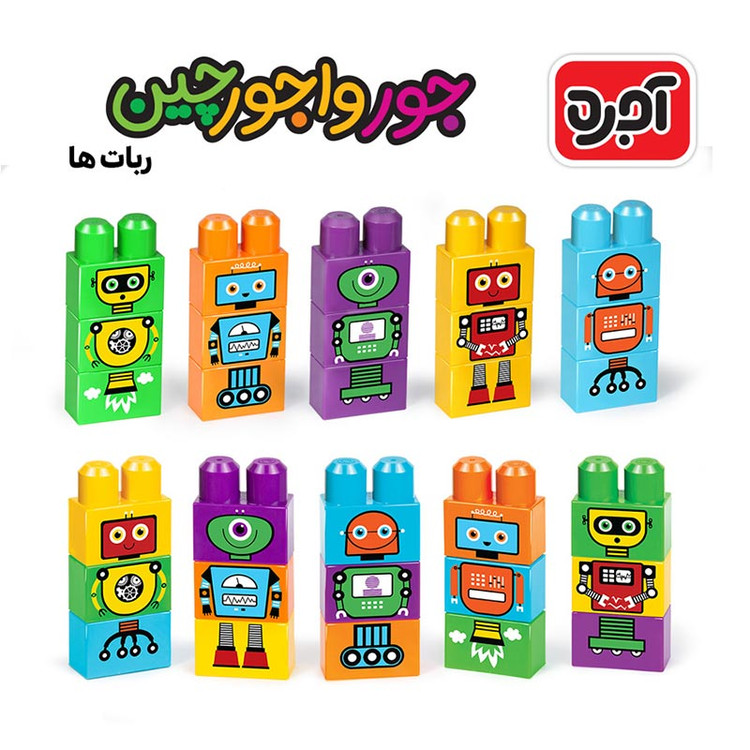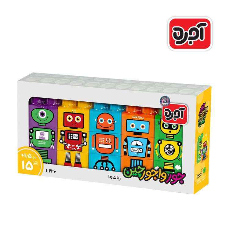 آجره جورواجورچین یک با 15 عدد آجره با طرح ربات است که یک اسباب بازی فکری و ساختنی جذاب برای کودک می باشد.