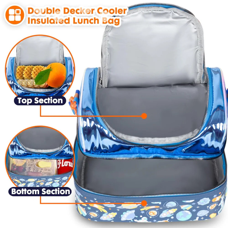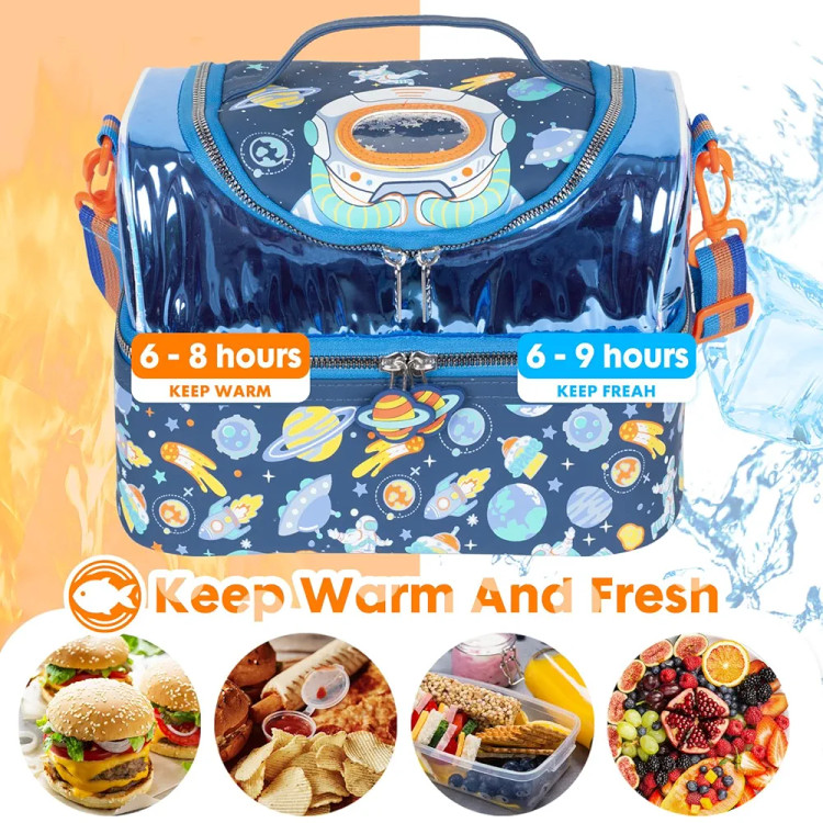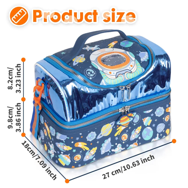 این لانچ بگ تجربهای متفاوت برای کودک فراهم میکنه. طراحی فضانوردی اون باعث میشه بچهها با اشتیاق بیشتری تغذیهشون رو همراه داشته باشن. رنگهای فانتزی و تصویر سفینه یا ستارهها، حس ماجراجویی رو به لحظات مدرسه اضافه میکنه.