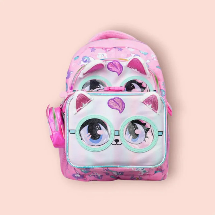 طراحی گربه عینکی این ست، برای کودکانی که عاشق حیوانات و طرحهای فانتزی هستند، بسیار جذاب است. کولهپشتی با بندهای پددار و جیبهای متعدد، فضای کافی برای کتاب، قمقمه و لوازمالتحریر فراهم میکند. لانچبگ نیز با آستر عایقدار، غذا را تازه نگه میدارد و از نشت جلوگیری میکند.