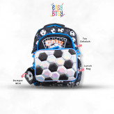 طراحی فوتبالی این ست، برای کودکانی که عاشق ورزش هستند، بسیار جذاب است. کولهپشتی با بندهای پددار و جیبهای متعدد، فضای کافی برای کتاب، قمقمه و لوازمالتحریر فراهم میکند. لانچبگ نیز با آستر عایقدار، غذا را تازه نگه میدارد و از نشت جلوگیری میکند.