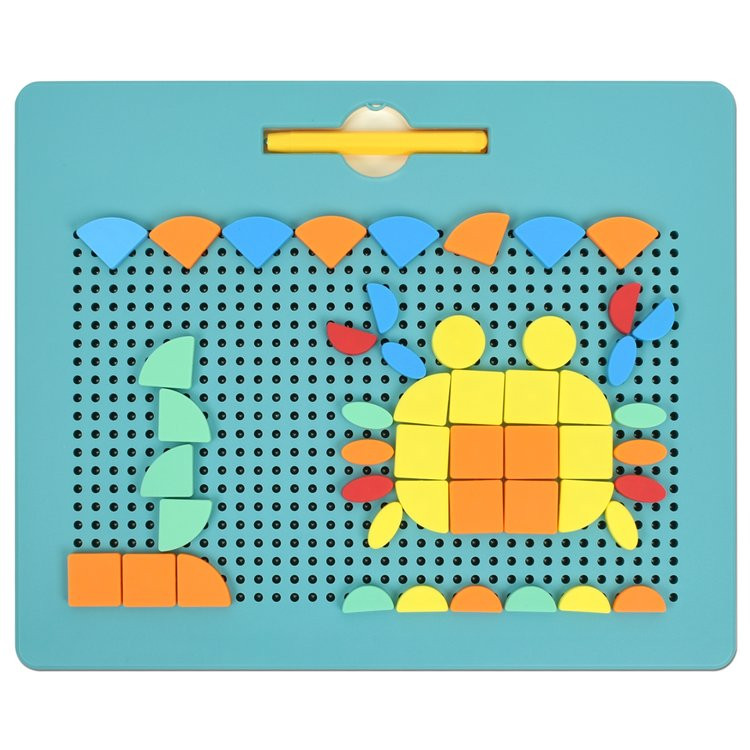 سطح تخته از مهرههای فلزی کوچک تشکیل شده که با قلم مغناطیسی قابل جابجایی هستند. کودک میتواند با کشیدن قلم روی سطح، مهرهها را بالا بیاورد و طرحهای دلخواه بسازد. همچنین پازلهای همراه، چالشهای تصویری و الگوسازی را به تجربه بازی اضافه میکنند.