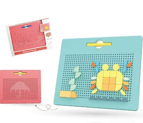 تخته مگنتی دو کاره با طراحی مبتنی بر مهرههای مغناطیسی، یک ابزار آموزشی و سرگرمی برای کودکان است که با استفاده از قلم مغناطیسی، مهرهها را از زیر سطح بالا میآورد و اشکال مختلف را خلق میکند. این محصول علاوه بر تقویت خلاقیت، به رشد مهارتهای حرکتی ظریف و تمرکز کودک کمک میکند.