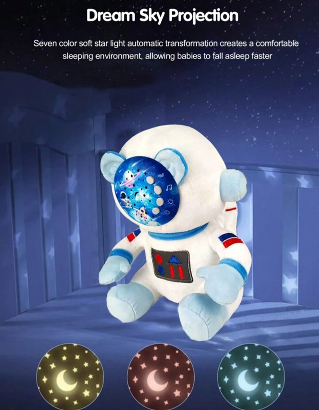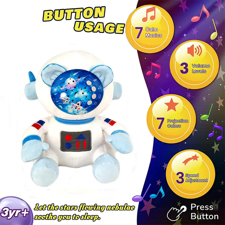 اگر بهدنبال چراغ خوابی هستی که هم زیبا باشه و هم به خواب کودک کمک کنه، مدل فضانورد پروژکتوری موزیکال انتخابی جادویی و کاربردی برای اتاق کودک است.