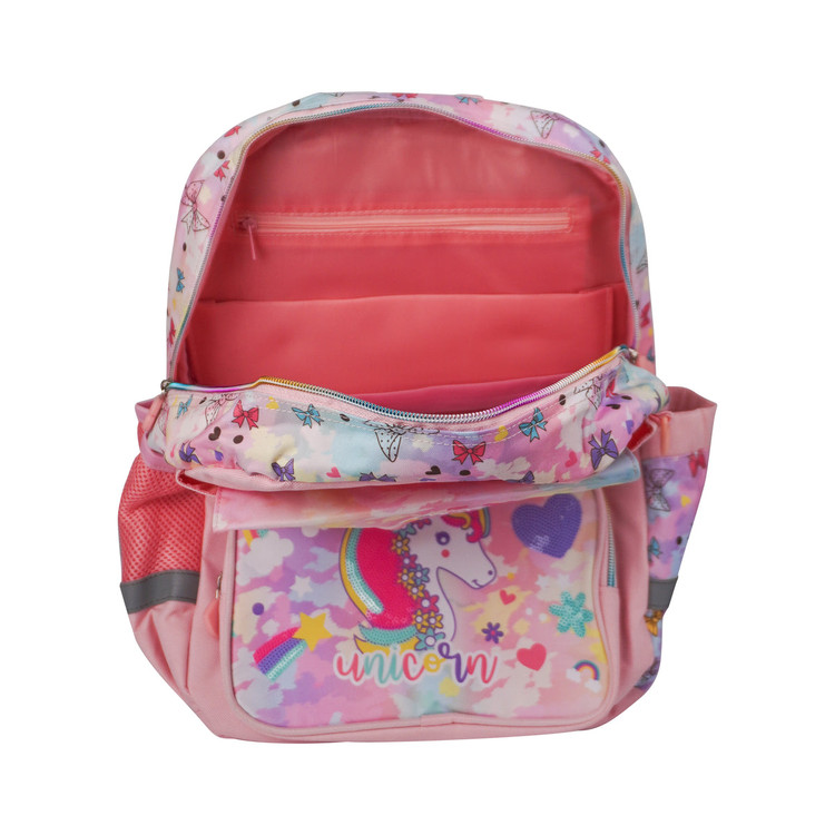 این کولهپشتی با طراحی یونیکورن، نهتنها یک وسیله حمل وسایل مدرسه بلکه بخشی از شخصیت کودک است. رنگهای شاد، تصویر برجسته یونیکورن و جزئیات فانتزی باعث میشود کودک با اشتیاق بیشتری از آن استفاده کند.