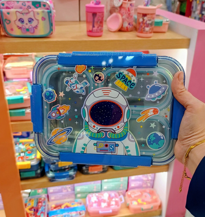 این ظرف غذا با طراحی فضانوردی، نهتنها وسیلهای برای حمل وعدههای غذایی بلکه بخشی از شخصیت کودک محسوب میشه. ظاهر فانتزی و رنگهای شاد باعث میشه کودک با اشتیاق بیشتری از ظرف خودش استفاده کنه و حس مالکیت بیشتری نسبت به وسایلش داشته باشه.