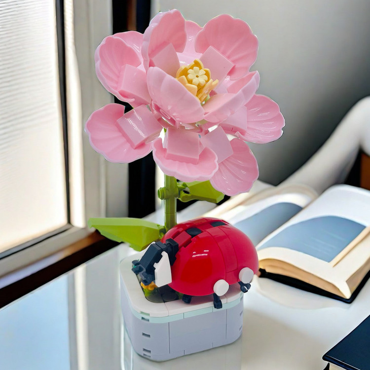 لگو گل و حشرات مدل کفشدوزک از سری Zuanma، یک مجموعه ساختنی طبیعتمحور با طراحی تزئینی است که شامل گلهای رنگی، برگهای سبز و کفشدوزک قرمز با خالهای مشکی میباشد. این مدل همراه با پایه گلدانی سفید عرضه شده و برای دکور رومیزی یا هدیه مناسب است.