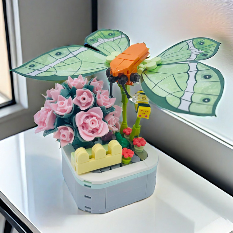 لگو گل و حشرات مدل پروانه از سری Zuanma، یک مجموعه ساختنی طبیعتمحور با طراحی تزئینی است که شامل گلهای رنگی، برگهای سبز و پروانهای زیبا با بالهای برجسته میباشد. این مدل همراه با پایه گلدانی سفید عرضه شده و برای دکور رومیزی یا هدیه مناسب است.
