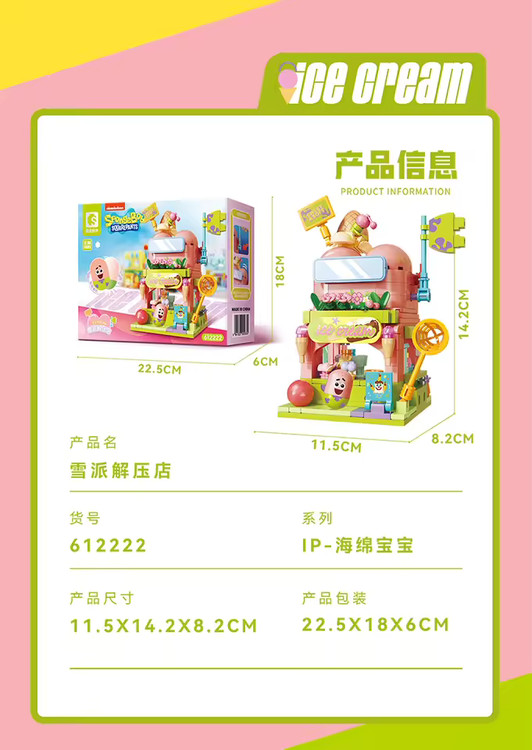 مشخصات کامل این محصول در سایت بینالمللی Merlins Bricks قابل مشاهده است: Sembo SpongeBob Ice Cream Shop – Merlins Bricks