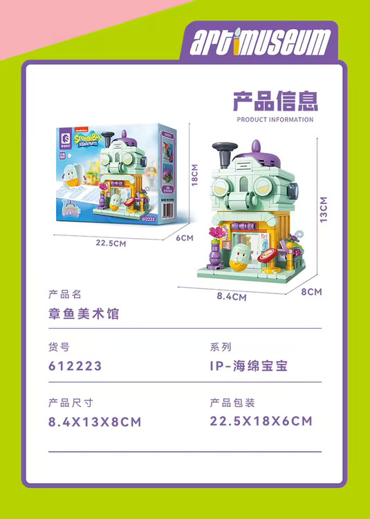 مشخصات کامل این محصول در سایت بینالمللی Merlins Steine قابل مشاهده است: Sembo SpongeBob Art Museum – Merlins Steine