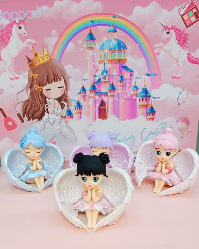 این دو فیگور فرشته، با حالت نشسته و چهرهای آرام، حس مراقبت و لطافت را منتقل میکنند. کودک یا بزرگسال، با نگاه به آنها، حس آرامش و خیالپردازی را تجربه میکند. ترکیب رنگ آبی و صورتی، بالهای سفید، و فرم نشستن با دست زیر چانه، همه چیز را شاعرانه کردهاند.