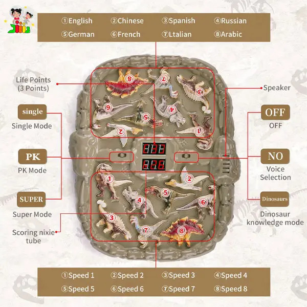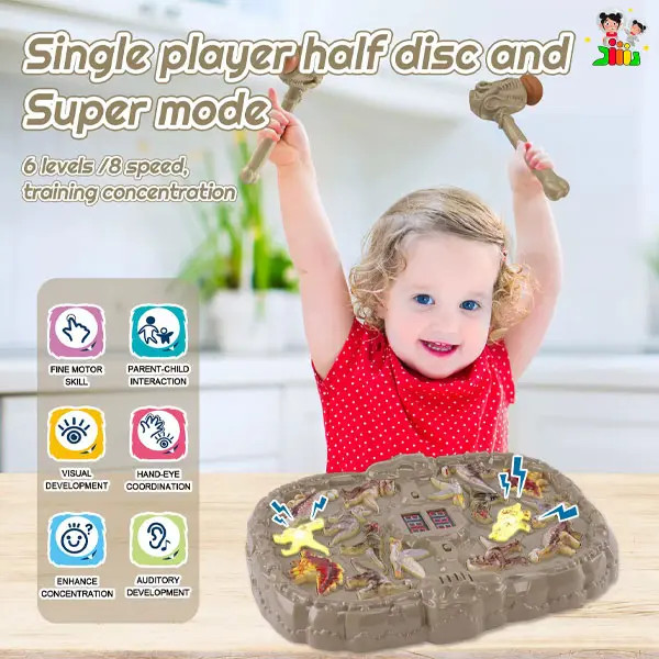 این بازی کوبهای، ترکیبی از هیجان، آموزش و تمرین حرکتی است. کودک با ضربهزدن به دایناسورهای بالا آمده، هم سرگرم میشود و هم مهارتهای تمرکز و سرعت عمل خود را تقویت میکند. طراحی دایناسوری و نورپردازی آن، تجربهای جذاب و کودکپسند ایجاد کرده است.