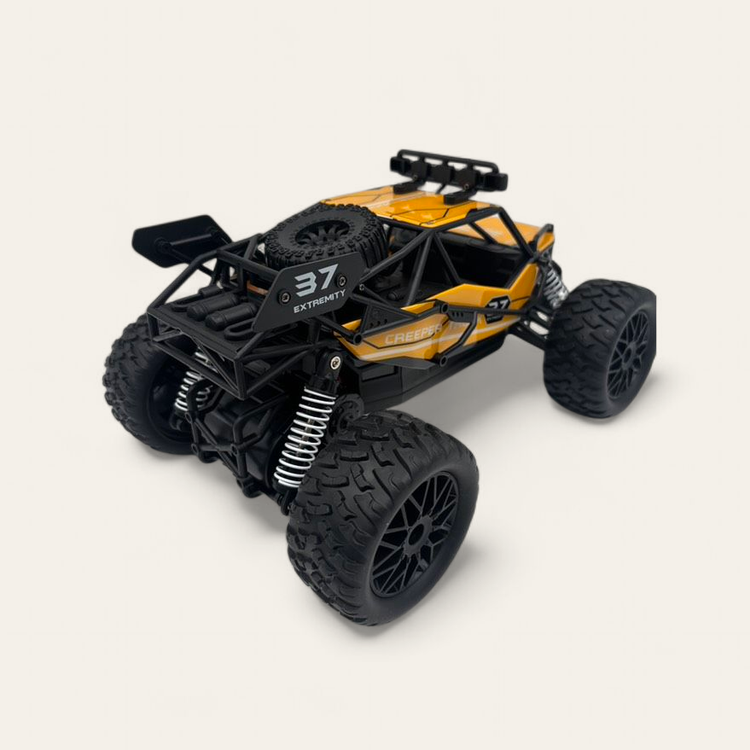 این ماشین آفرود با رنگ زرد چشمگیر، تجربهای هیجانانگیز برای کودک و نوجوان فراهم میکند. تایرهای بزرگ، فنربندی حرفهای و کنترلر دقیق باعث میشود در مسیرهای سخت عملکردی روان و قدرتمند داشته باشد.
