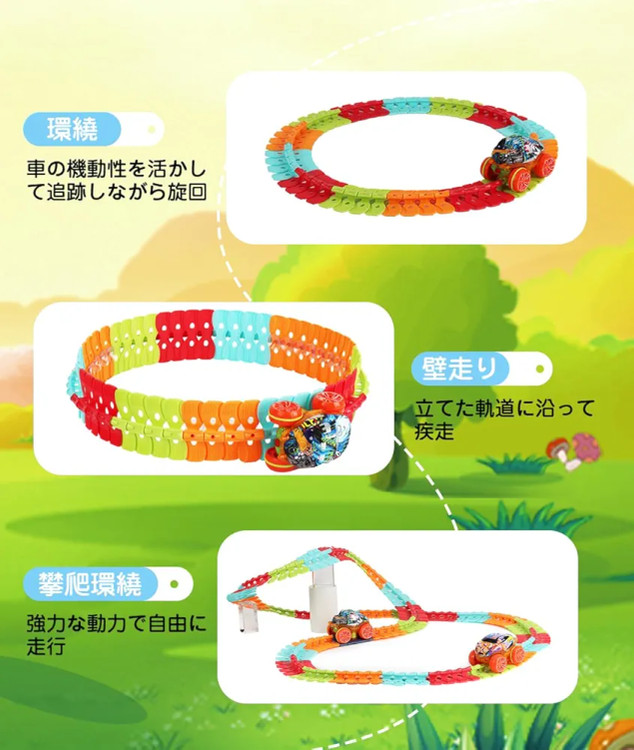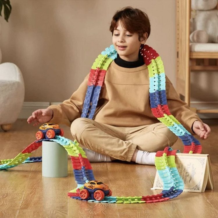 این مجموعه با ریلهای قابلانعطاف، رنگهای متنوع و ماشین نورانی، تجربهای سرگرمکننده و آموزشی برای کودک فراهم میکند. کودک میتواند مسیر دلخواه خود را طراحی کرده و با ماشین همراه، مسابقهای هیجانانگیز را تجربه کند.