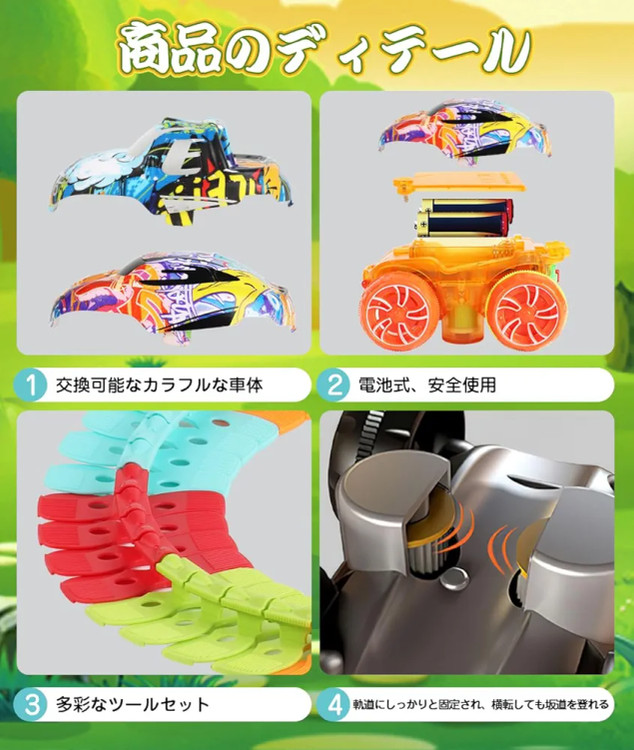 ریلها به راحتی به هم متصل میشوند و قابلیت خم شدن، چرخش و نصب روی سطوح مختلف را دارند. کودک میتواند مسیر دلخواه خود را طراحی کرده و با ماشین همراه، مسابقهای هیجانانگیز را تجربه کند.