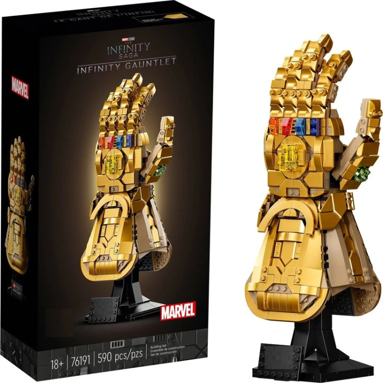 لگو دستکش بینهایت تانوس مدل 76191 از سری Marvel Infinity Saga یک مدل ساختنی کلکسیونی با طراحی دقیق و جزئیات سینمایی است. این محصول شامل *۵۹۰ قطعه* بوده و برای بزرگسالان *۱۸ سال به بالا* طراحی شده است.