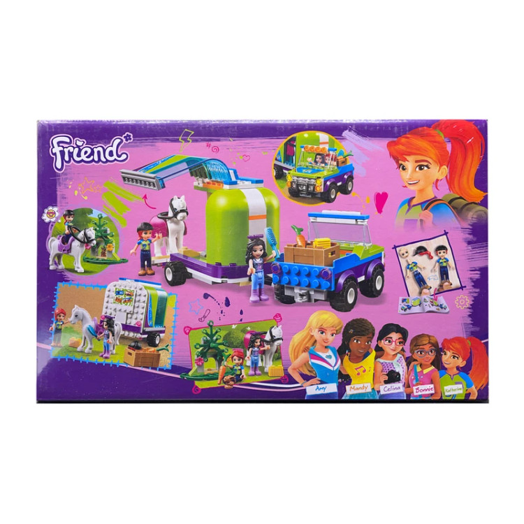 لگو فرندز مدل Mia Horse Trailer یک مجموعه ساختنی رنگی و ماجراجویانه از سری Friend است که شامل ماشین، تریلر اسب، دو فیگور دخترانه، یک اسب و لوازم جانبی مانند درخت، گل و تجهیزات مراقبت از حیوانات میباشد. این ست با ۲۲۲ قطعه مناسب کودکان ۶ سال به بالا طراحی شده است.