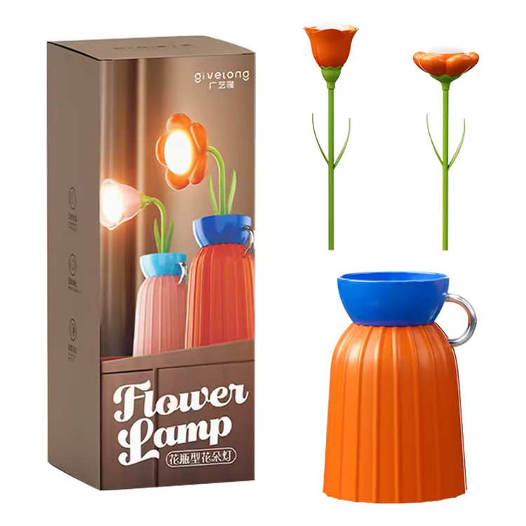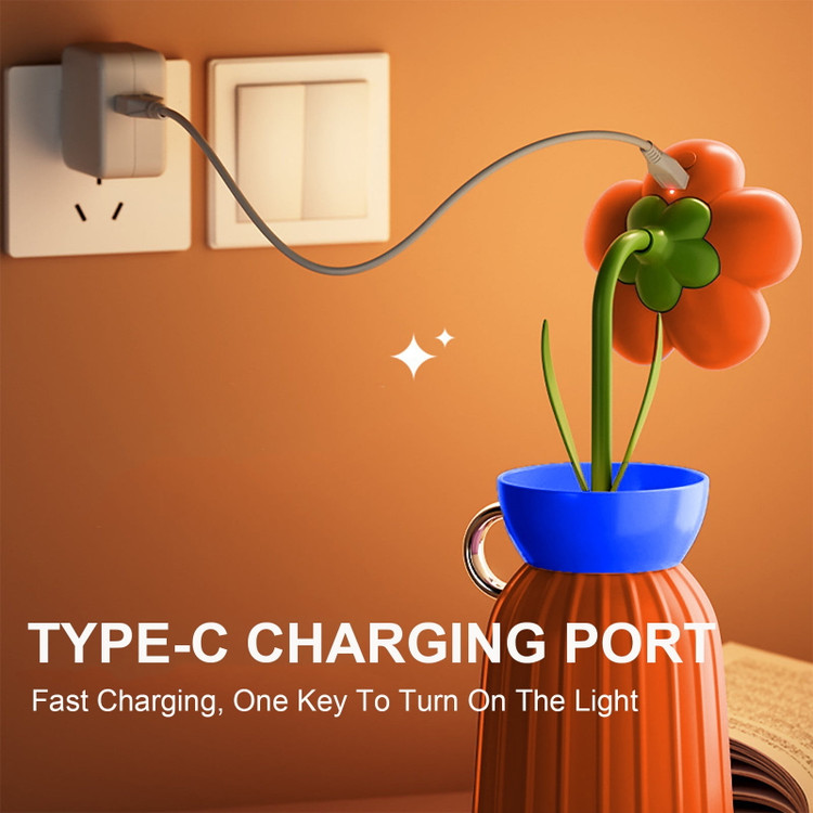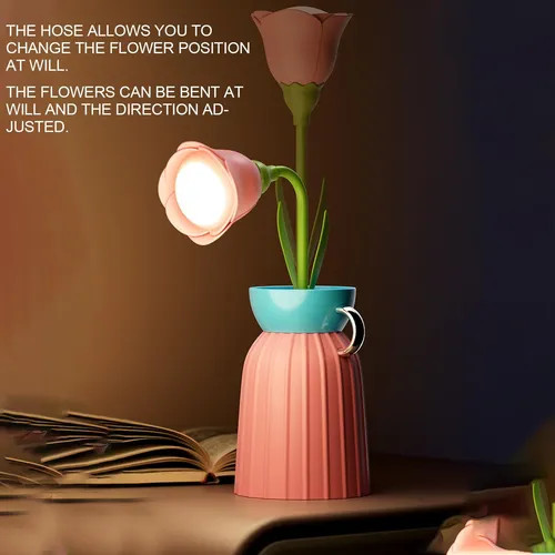 این چراغ خواب با باتری شارژی داخلی کار میکند و با یک کابل USB قابل شارژ است. نور ملایم و چشمنواز آن برای استفاده در شب، مطالعه سبک یا ایجاد فضای رمانتیک بسیار مناسب است. ترکیب رنگهای جذاب گلدان و گلها، آن را به یک اکسسوری دکوری زیبا تبدیل کرده است.