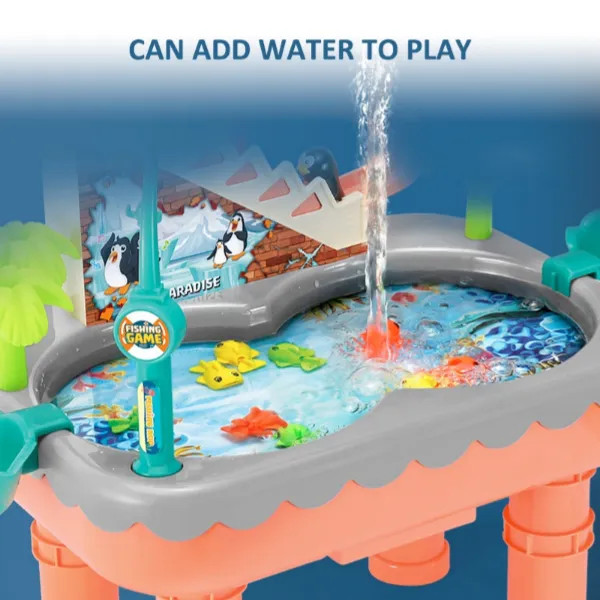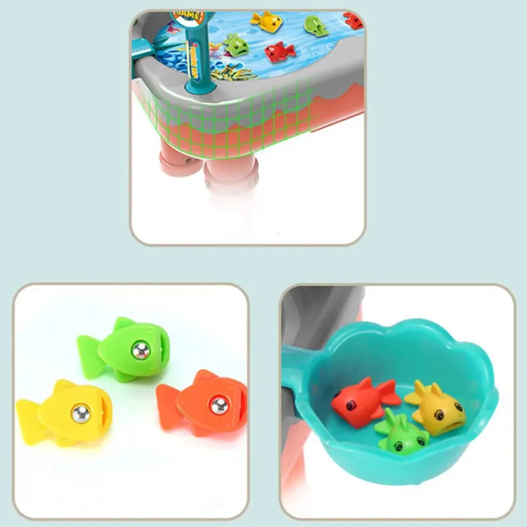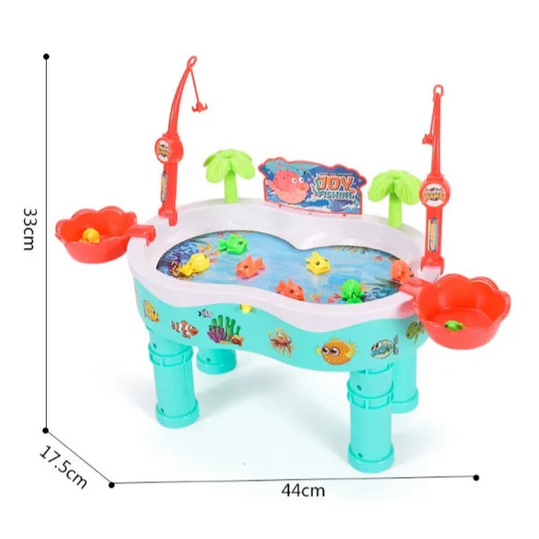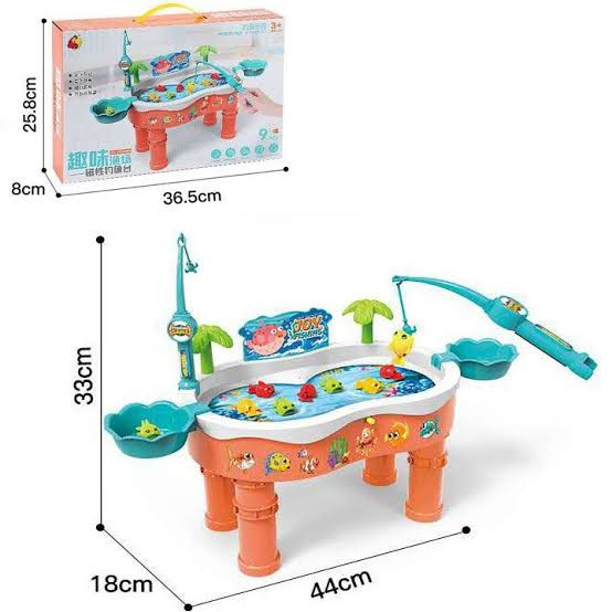 این میز با طراحی فانتزی، حرکت چرخشی ماهیها و موزیک کودکانه، کودک را به بازی فعال و تمرکز بیشتر تشویق میکند. قلابهای مغناطیسی باعث میشوند کودک بدون نیاز به دقت زیاد، موفق به شکار ماهی شود و حس موفقیت را تجربه کند.