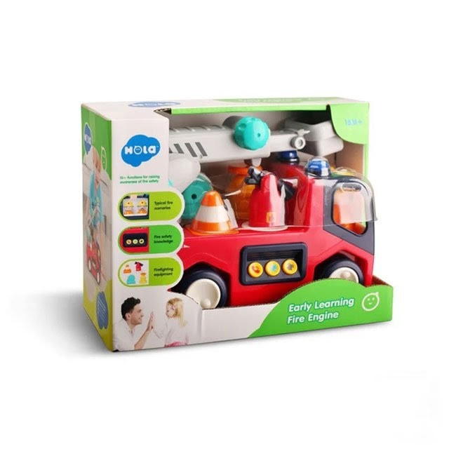 این ماشین دارای چهره کارتونی، دکمههای تصویری، شلنگ آب چرخان، مخروط ایمنی، کپسول آتشنشانی و دو فیگور آتشنشان با لباس نارنجی و کلاه زرد است. کودک میتواند با فشار دادن دکمهها، صداهای مرتبط را بشنود و با تخیل خود عملیات نجات را شبیهسازی کند.