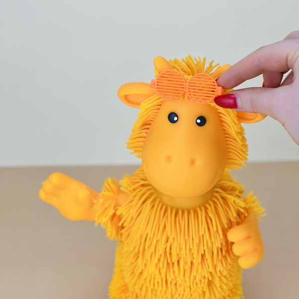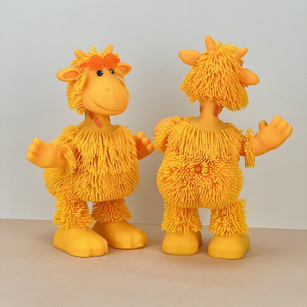 این عروسک با طراحی رنگارنگ، افکتهای صوتی و حرکت لرزشی، کودک را به تجربهای شاد و پرانرژی دعوت میکند. وجود آهنگهای شاد، بافت ژلهای و قابلیت رقص باعث میشود کودک با تخیل و تحرک خود لحظاتی شاد و فعال داشته باشد.