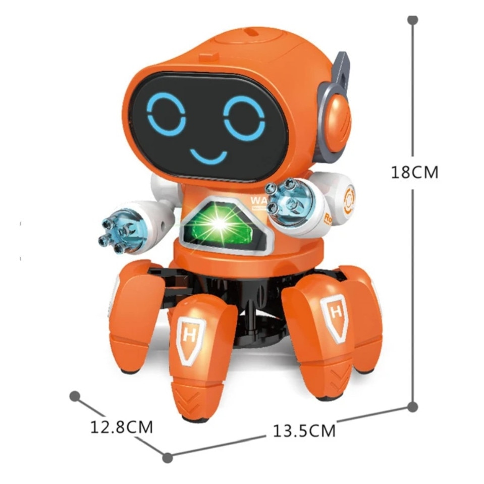 ربات دارای چهار پایه با نماد H بوده و هنگام فعالسازی با نورهای رنگی و موسیقی شاد شروع به حرکت میکند. این محصول برای تقویت مهارتهای حرکتی، آشنایی با مفاهیم اولیه رباتیک و بازی تخیلی بسیار مناسب است.