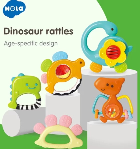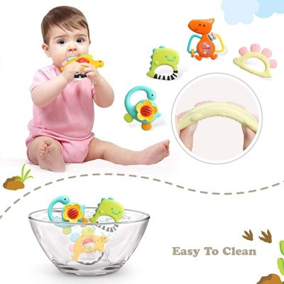 ست جغجغه و دندانگیر 5 عددی Huile Toys مدل دایناسور
